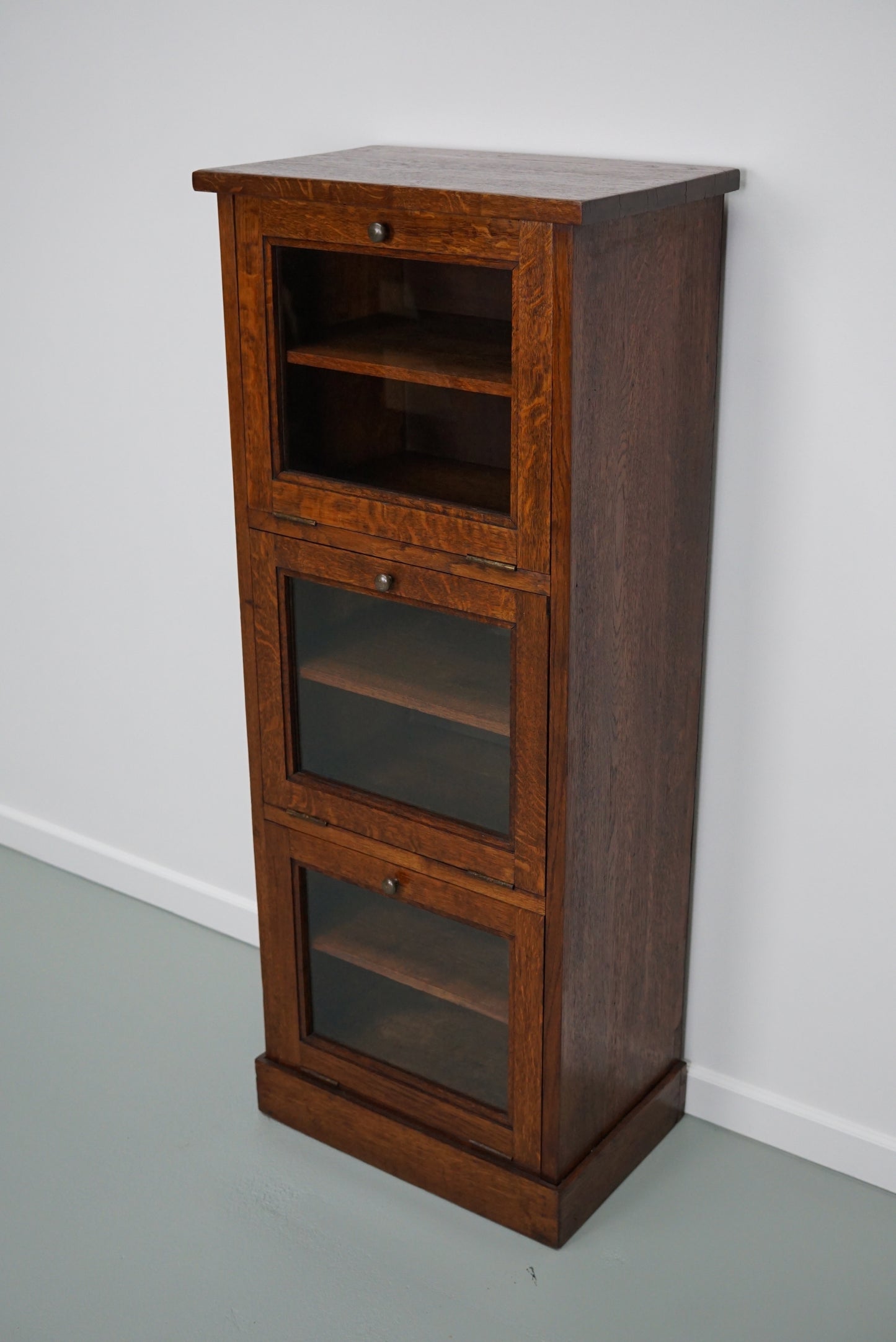 This haberdashery cabinet was produced during the 1930s in France. This piece features 3 folding doors in oak with glass fronts and brass knobs. It was originally used in a luxury warehouse in Paris. The interior dimensions of the 6 compartments are: D 27 x W 40 x H 16 cm.