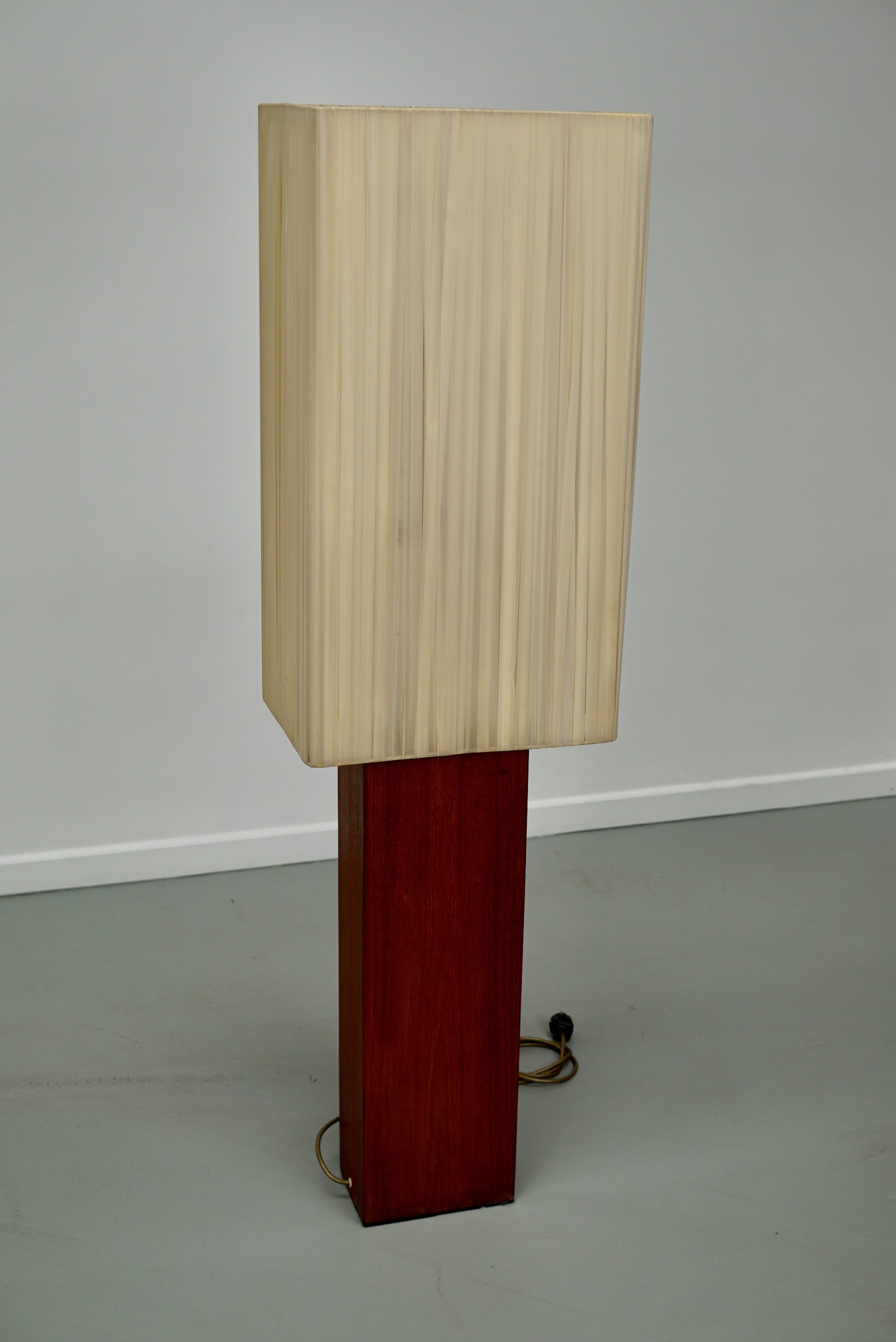Large Vintage Teak Floorlamp with Square Beige Shade, 1960/70s