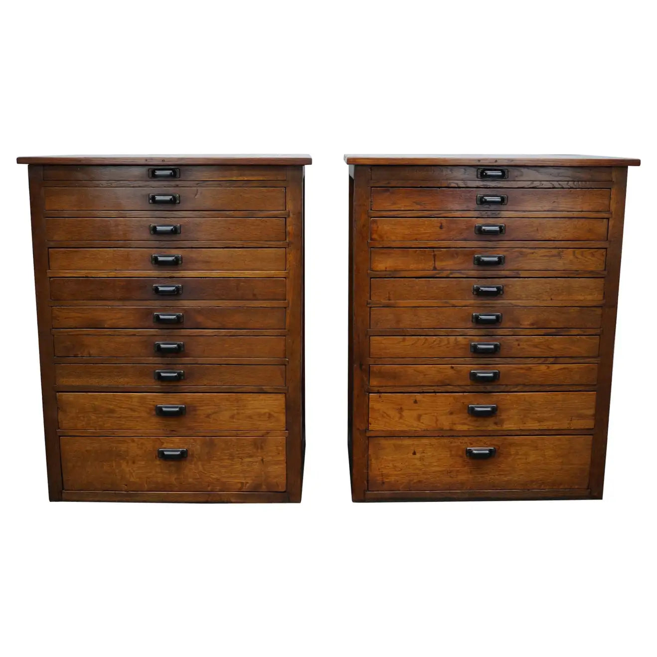 Pair of Vintage Dutch Oak Jewelers / Watchmakers Cabinets, circa 1930