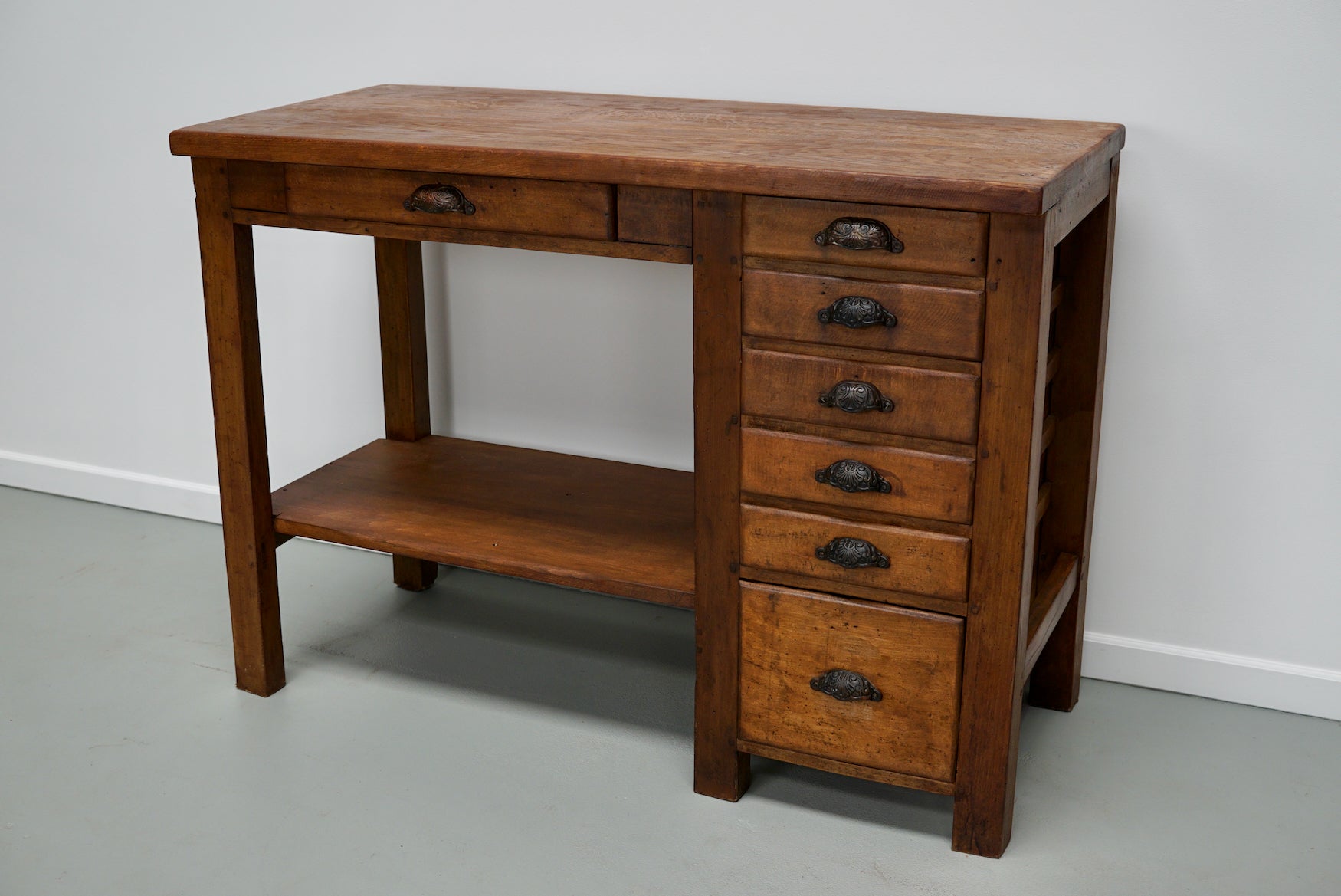 This workbench was made from oak and beech in France. It was either used by a watchmaker or jeweler. It is in a good vintage condition with signs of use and age.